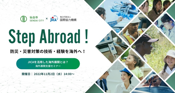 仙台市では、BOSAI-TECH海外展開支援プログラム【Step Abroad!】をスタートし、11月2日(水)にセミナーを開催する。