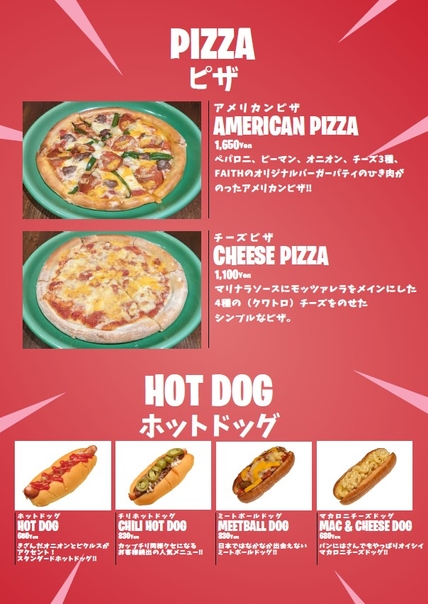 お客様の要望でも多かった、『パスタ』『ピザ』なども今回新しくメニューに加わりました!一部商品は夜、土曜日限定メニューになります!