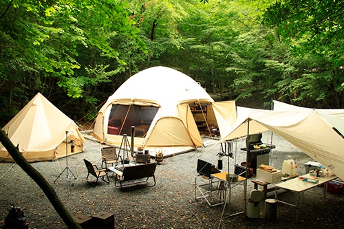 森の中でのアクティビティやバーベキューが楽しめ、夜はテントで満天の星空を眺めることもできます。精進湖からも近く、カヌーやカヤックなども楽しめます。