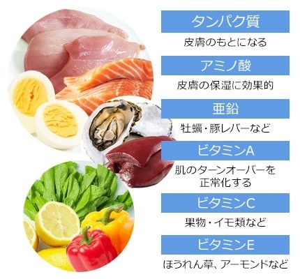 肌のために摂取したい栄養素と刺激になりやすい食べ物や生活習慣をカウンセリングで提案しましょう。