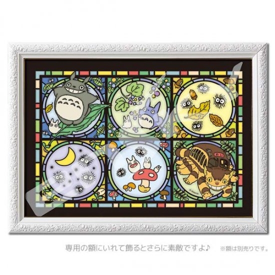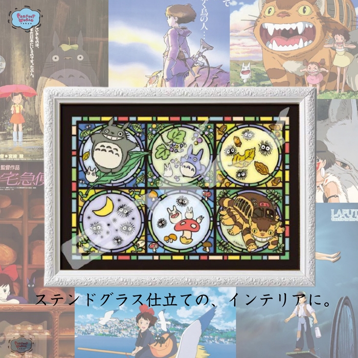 ステンドグラス仕立てで完成したらインテリアにどうですか?どこまでも美しいアートなデザインのトトロやラピュタのパズル