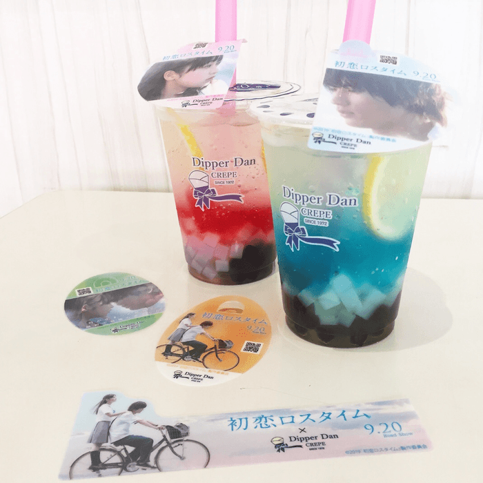 ディッパーダンでは映画『初恋ロスタイム』公開を記念して、期間限定メニューの「タピオカスプラッシュ」を「#初恋スプラッシュ」として販売。