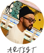 1978年大阪生まれ。日本の伝統とストリートカルチャーの融合をテーマにした『BAKI柄』は、江戸時代に流行した"麻の葉文様"を現代にアップデートしたといわれており、その活動はライブペインティングや壁画 ・ワークショップを中心に、国内外に足跡を残し続けています。