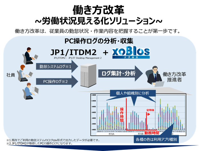 ~Excel業務効率化ソリューションxoBlos(ゾブロス)と 統合システム運用管理ソフトウェアJP1(ジェーピーワン)が連携し、 労働状況見える化ソリューションを実現~