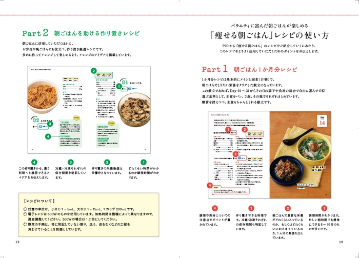 ●朝ごはん1か月分の献立、レシピをご紹介しています。体調に合わせてパン、ご飯、その他の献立から自由に選べます。