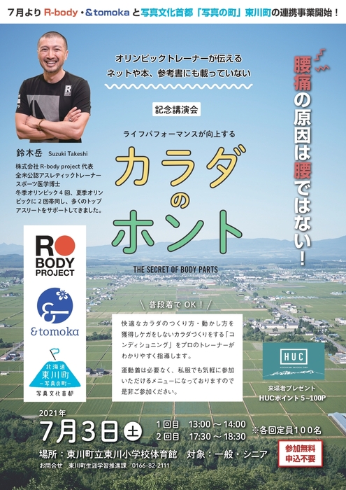 本協定において、2021年7月から株式会社R-body projectより、住民の健康をサポートするために、コンディショニングコーチを東川町に派遣されます。