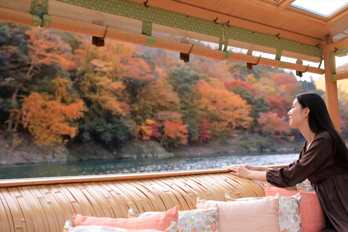 【星のや京都】1日1組限定!貸し切り屋形船で渓谷の紅葉を独占できる「朝のもみじ舟」開催|期間:2021年11月20日〜12月5日