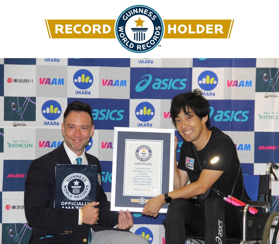 プロなわとびプレーヤーの生山ヒジキ(いくやま ひじき)が、2018年8月25日(土)17時~26日(日)17時にかけ「Most skips over a rope in 24 hours」(24時間で最も多い単縄一回旋一跳躍)のギネス世界記録(TM)にチャレンジし、現在の世界記録「151,036回」の所、「151,409回」を跳び、見事ギネス世界新記録(TM)に認定されました。