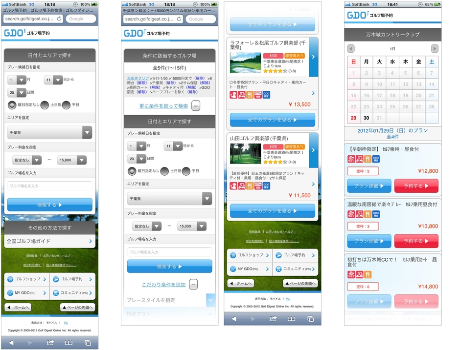 スマートフォンブラウザ版「GDOゴルフ場予約検索」