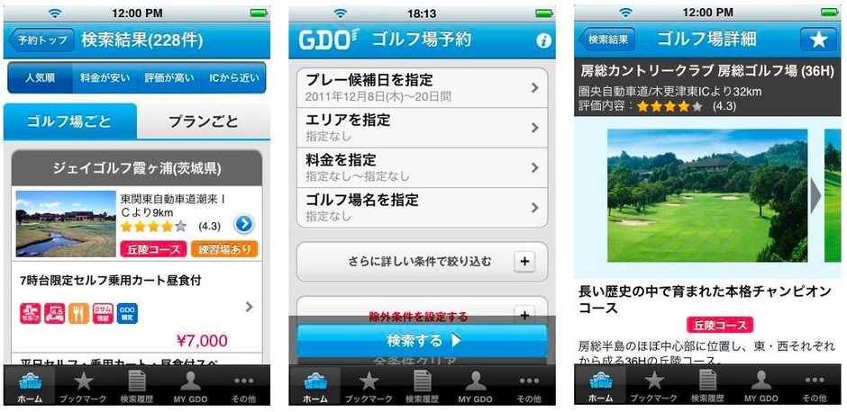 iPhoneアプリ版「GDOゴルフ場予約」