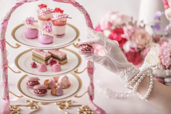 ラグジュアリーな空間でプリンセス気分を味わえるオールデイ・ラウンジ「ストリングス ラウンジ」では、ピンクカラーを基調とした『マリー・アントワネット アフタヌーンティー~ジャポネ クチュール~』を2022年4月1日(金)~5月31日(火)の期間限定で販売いたします。