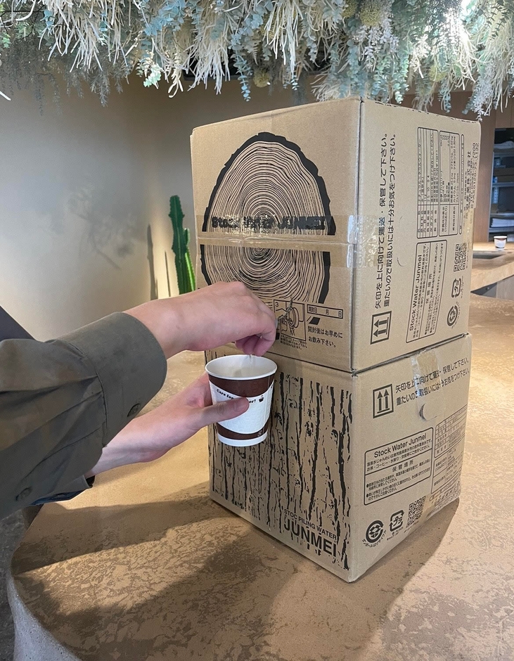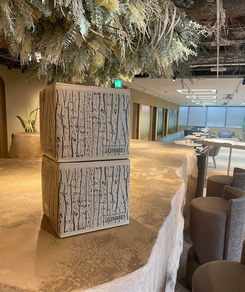 若者を中心に幅広い世代に飲む温泉水の魅力を知ってもらうため、宅配水の新しいカタチをテーマにプロジェクトを始動。「Stock Water JUNMEI」はどのような場所にでもマッチするよう、自然を感じさせる木の模様をデザインしました。昨今多発しております異常気象や災害に対するいざという時の備えとして、ローリングストック法を用いて活用していただけたらと思います。