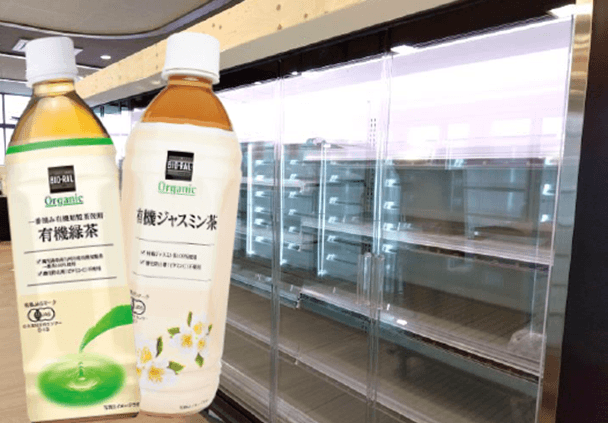 ペットボトル飲料などの冷蔵ケースを扉が付いたリーチインケースにすることで、消費電力・CO₂排出量の削減を目指します。
