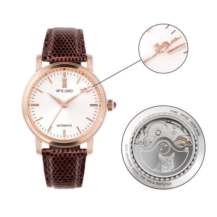 ケイ・ウノは、2007年より時計の研究開発をはじめ、宝飾部門出身の職人が製造を担当し、複雑な装飾品の作り方や貴金属を使った際の強度を計算するなど、オーダーメイドジュエリーで培った技術で、一点一点手作りされる機械式時計ならではの味わい、温かみを生み出しています。2017年10月に、日本製の機械式ムーブメントを使用したカスタムオーダー腕時計『Custo Wa(カストヴァ)』を発売。ケースや文字盤、インデックス(文字盤の上にある、時や分を表す目盛り)、針、ベルトを自由に組み合わせてデザインできます。このほどの「ペットデザイン腕時計」サービス」では、文字盤や針、ローター、裏蓋などにペットのデザインを取り入れることが可能です。