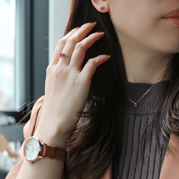 洗練された柔らかな女性のイメージと特徴的で美しいカラーストーンによって甘さや落ち着いたビター感が加わり、さまざまな表情をお楽しみいただけます。