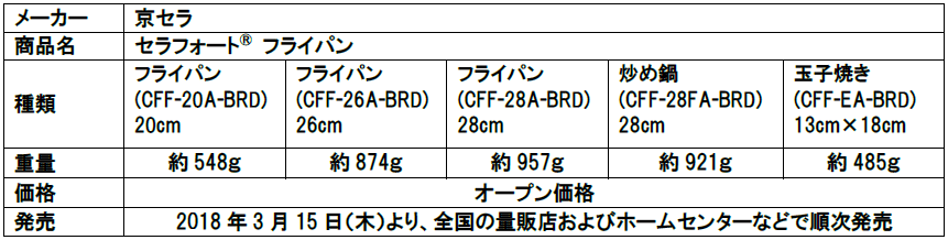 京セラ株式会社(代表取締役社長:谷本 秀夫)は、熱まわりの良さと焦げつきにくさで好評の「セラフォート フライパン」をリニューアルし、本年3月15日(木)より全国の量販店およびホームセンターなどで順次販売を開始しますのでお知らせいたします。