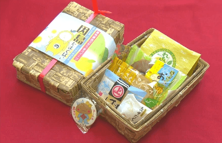 因島のお土産と言えばコレ!という銘菓5品を和かごにお詰めした限定セット