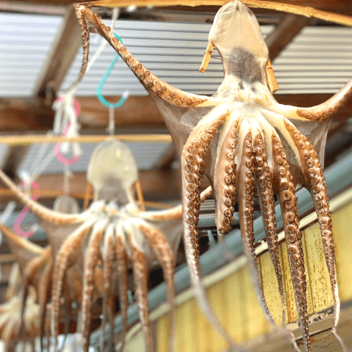 瀬戸内海の新鮮なタコを、丁寧に天日干しにしています。