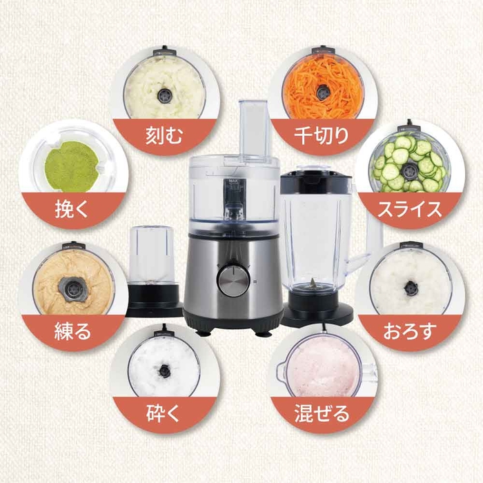 スマックエイトプロは、1台で8役もこなしてくれるから、簡単&時短で料理の幅がぐんっと広がります。みじん切りや大根おろしがたったの3秒!おうちごはんがラク~に作れるから自由な時間が増えて、家族も笑顔になります。