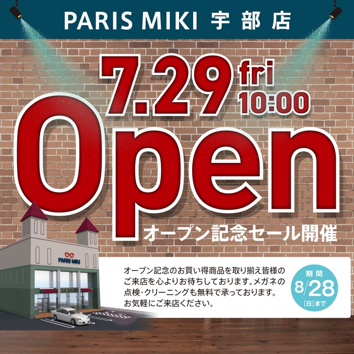 株式会社 パリミキ(本社:東京都港区、代表取締役社長:澤田将広)は、2022年7月29日(金)山口県宇部市に「パリミキ 宇部店」を、装いも新たに移転OPENいたします。