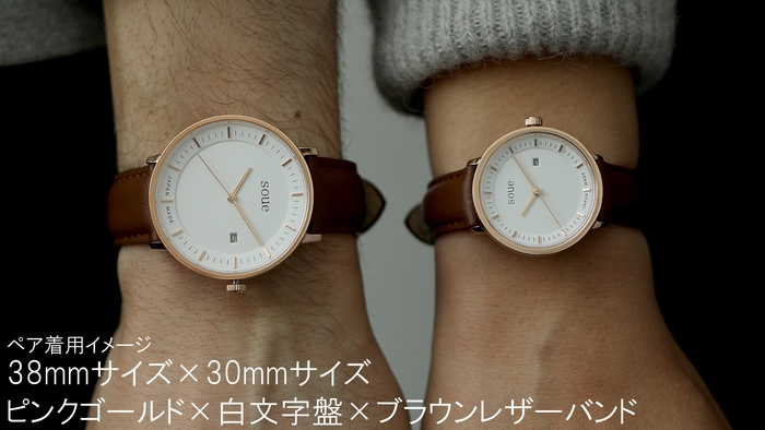 ペアに特化したこだわりの新ブランド「soue」(ソウ) サイズも色も自由自在!組み合わせパターン数約4万通りから、自由にこだわりのペアウォッチを楽しもう♪♪ 一緒に組み合わせを選ぶ時間も楽しい思い出の1ページに!! 是非、あなただけの組み合わせを…。 さらに仲良し3人組でのペアにも対応! クラウドファンディング限定で1本シングルからご購入頂くことが可能です! 品質は安心の高品質日本製!ボックスもペア保管用と1本保管用を選べて楽しさ3倍!!