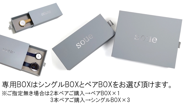 ペアウォッチには嬉しい「2本用のペアBOX」と、離れて暮らす方などに向けて別々で保管できる「シングルBOX」をお選び頂けます。