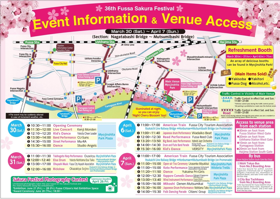 ※「各イベント・模擬店」は3月30日(土)・31日(日)、4月6日(土)・7日(日)の4日間開催します。