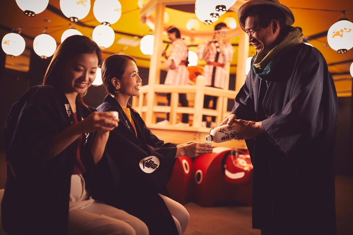 投票結果は、夜の館内イベントである「あいばせ!踊らんしょ」で毎日発表します。その日の1位に選ばれた日本酒は、「あいばせ!踊らんしょ」に参加しているゲストにふるまわれます。お囃子や笛、太鼓の生演奏を聴きながら、日本酒を楽しめます。