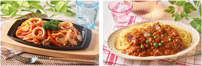 左:函館を代表する食材であるイカと地場野菜を使い、函館の漁業や農業を応援しよう、という気持ちを込めて2014年頃に登場した「イカナポリタン」。鬼怒川御苑では、イカと玉ねぎのシンプルな具材を濃厚なナポリタンソースで和えた、B級グルメならではの美味しさをご提供します。
