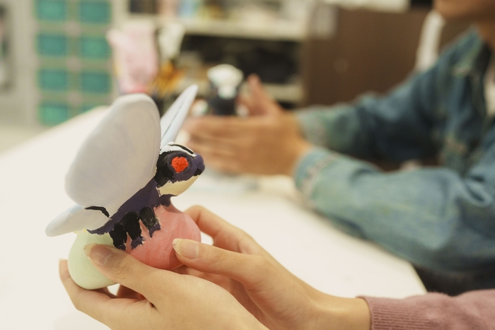 真っ白な素焼きのゴジラ、モスラにさまざまな絵の具を使って、オリジナルの怪獣アートを体験できるクラフトイベント。完成した作品は持ち帰り可能