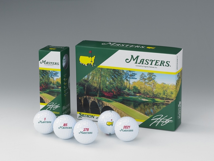 本商品は、今年3月に発売した「マスターズ NEW スリクソン Z-STAR XV」(1ダース:12球入り)の特別記念バージョンです。ダース箱とスリーブ箱(3個入)には、マスターズの会場「オーガスタナショナルゴルフクラブ」12番ホールの写真と松山選手のサインをプリント。またダース箱カバーとして、特別記念パッケージがついています。ボールナンバーは優勝にちなみ、「1」、「85」、「278」、「2021」としています。(「2021」年 第「85」回大会、「278」ストロークで優勝「1」位)