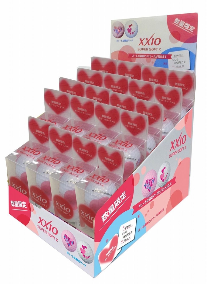 住友ゴムグループの(株)ダンロップスポーツマーケティング(本社:東京、社長:尾島 祐輔)は、ゼクシオボール史上最軟のコアがもたらす“ソフトフィーリング”と、“飛ばす快感”を体感できるゴルフボール「ゼクシオ SUPER SOFT X」から大きなハートマークをプリントした女性向けの商品を2018年4月20日から数量限定で発売します。お試し感覚で購入できる1パック(プレミアムホワイト1個+プレミアムピンク1個の計2個入)の販売で、メーカー希望小売価格は1,400円+税です。