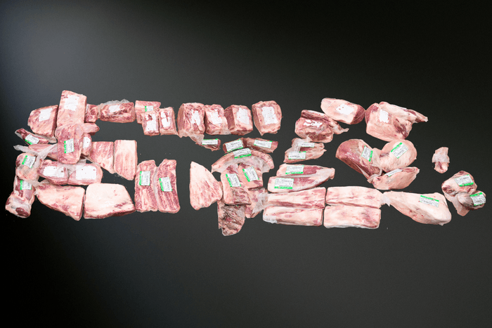 和牛を1頭分カットしてご自宅にお届けします。各部位ごとの調理方法などの参考資料も同封しています。半頭からも購入いただけます。イベントの景品やフェスの目玉にもおすすめです。