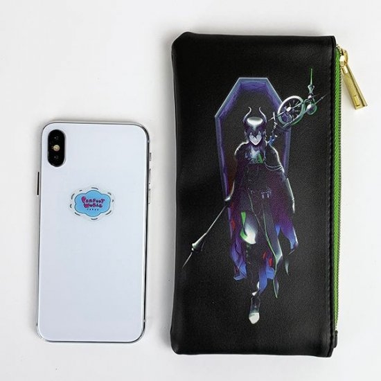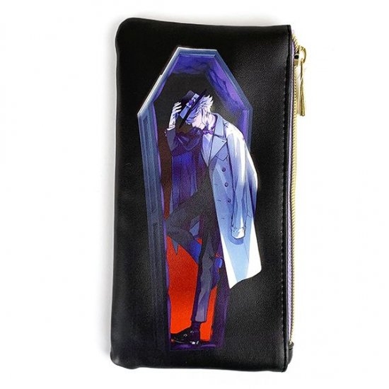 お馴染みの棺デザインのスリムポーチです。各寮の寮長のキャラクターがイラストになっていて、カラーもクールなブラックを基調としています。