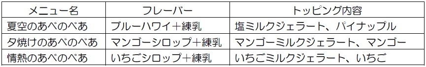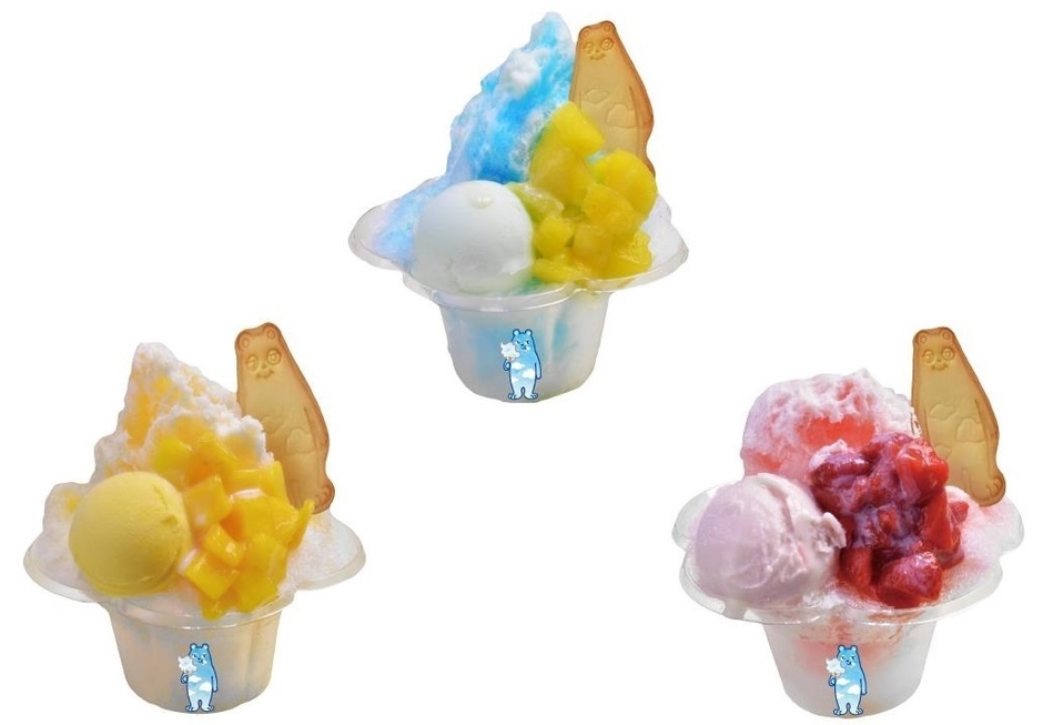 「あべのべあかき氷」は株式会社近鉄リテーリングと、「ハルカスガーデンキッチン」の運営パートナーであるイタリアンジェラート専門店の株式会社キャナレットジャパン(大阪市東成区)との共同開発商品であり、天気により体の模様が変化するあべのべあをイメージして、青、黄、赤の3色のメニューをご用意しました。