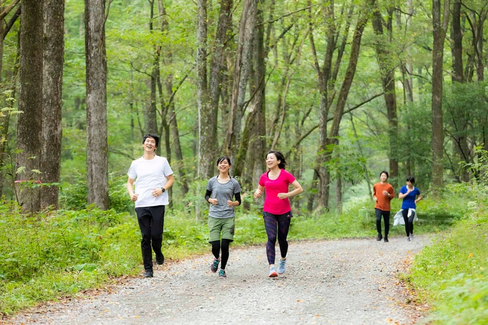 そこで、誰でも気軽に参加でき、新緑の中、無理のないペースで体を動かす爽快感や、完走後の達成感が得られるランニングイベントを企画しました。このイベントを通して軽井沢星野エリアからランニングコミュニティが生まれることを目的としています。