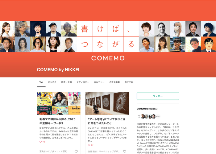 日本経済新聞が運営するCOMEMOの書き手に、 noteのクリエイターが起用されました