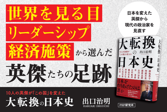 株式会社PHP研究所(京都市南区・代表取締役社長 瀬津要)は、出口治明氏の新刊『大転換の日本史』を2025年4月15日に発売します。日本史では近年、多くの新資料の発見や新たな発掘調査もあり、歴史的な事件や登場人物について、その評価が変化しています。本書は、こうした最新の研究結果も踏まえて、出口氏が、日本史の転換点の中心にいた10人の先駆者について解説した480頁の大著です。