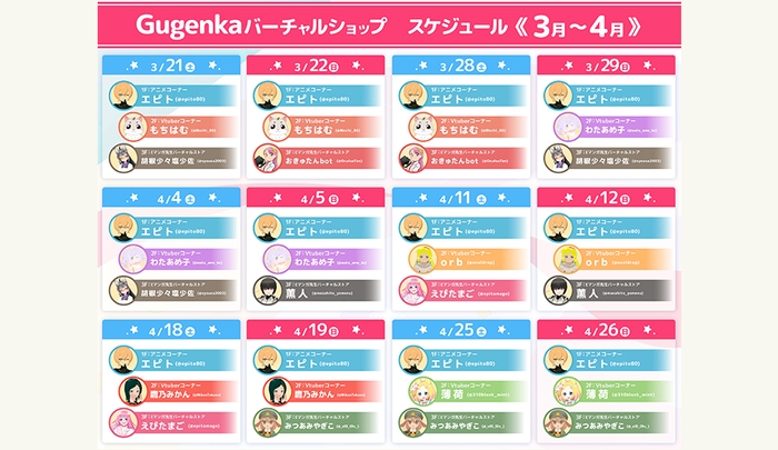 ※バーチャルショップスタッフの皆さんは下記の日時でGugenkaバーチャルショップにて接客しています。