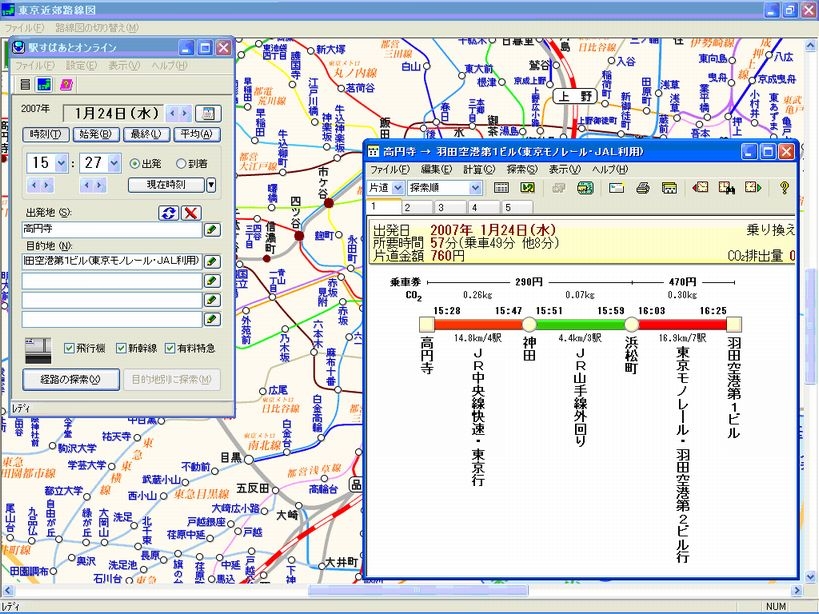「駅すぱあと オンライン」では、基本機能が含まれたクライアントプログラムをあらかじめインストールするため、多くのユーザーにご好評いただいている様々な経路探索情報、インターフェースや機能については既存製品とほぼ変わりません。※