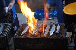 今回の野宴料理は、「六甲山ジンギスカン(ラム漬込)」と山形名物「芋煮」、そして北海道産「歯舞さんま」(漁況により産地変更する場合あり)です。「山形芋煮」は、山形出身の料理人である冨澤浩一氏がプロデュースし、「歯舞さんま」は当日その場で「浪花ろばた八角」のろばた士が焼き上げます。