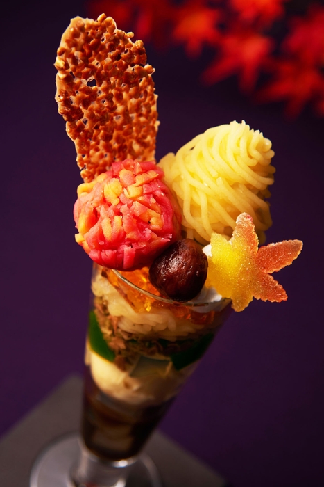 今年も抹茶パフェが秋色に染まる季節となりました。『もみじ抹茶パフェ』は、抹茶餡の紅葉きんとん、紅葉ゼリー、栗の渋皮煮、鳴門金時のさつまいもクリーム、チュイールアーモンドクッキーをあしらい、豊かで艶やかな秋を表現した秋限定の季節限定パフェ。グラスの中には、抹茶ゼリーやほうじ茶蜜など、お茶屋ならではの具材で宇治茶の魅力を詰め込みました。美しい日本の秋を、目と舌でお楽しみください。