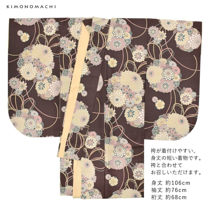京都きもの町オリジナルブランド「KIMONOMACHI」の二尺袖着物は、袴と合わせて卒業式などの袴スタイルにおすすめです。また、身丈が袴下に着るのに最適なショート丈となっていますので、手早く着付けることが可能。ポリエステル素材なので自宅の洗濯機で洗え、お手入れが楽ちんなのも魅力です。