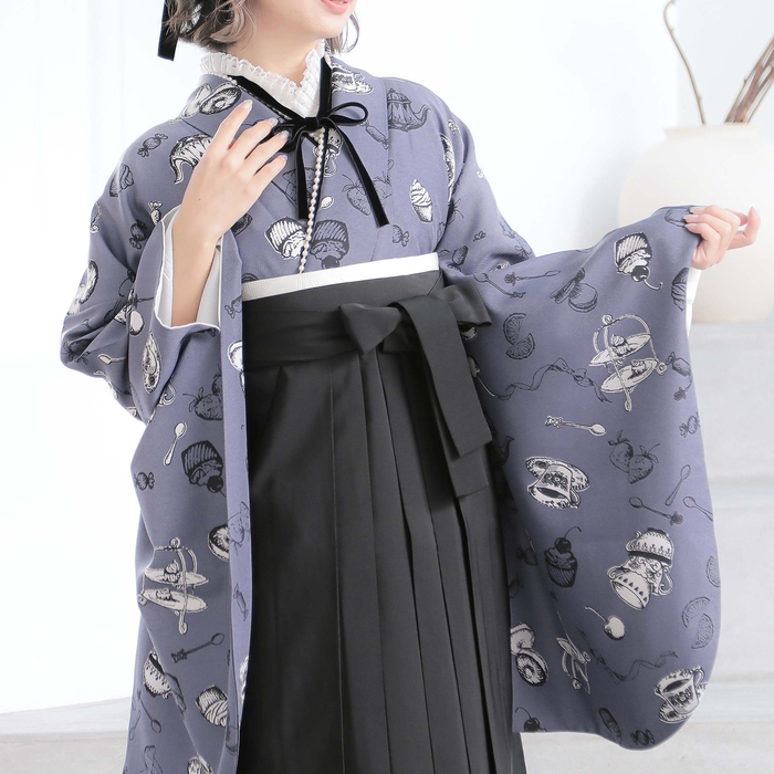 卒業式に袴と合わせて着用されることが多い二尺袖(にしゃくそで)着物。単に「二尺袖」とも呼ばれます。
