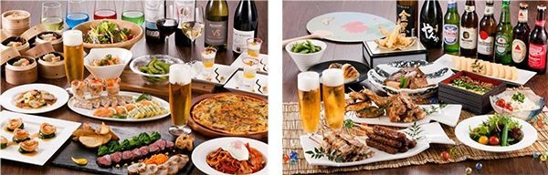 (写真左)【A】「ファインダイニング・ブルースター」の「WINE&BEER FESTA」(写真右)【B】日本料理「花万」の「世界のビールで夏に乾杯」