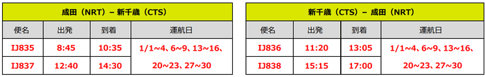スプリング・ジャパン株式会社(本社:千葉県成田市、代表取締役社長:米澤 章、以下:スプリング・ジャパン)は 2023 年 1 月 1 日~1 月 31 日の期間において、成田=新千歳線、広島線を以下の通り増便いたします。
