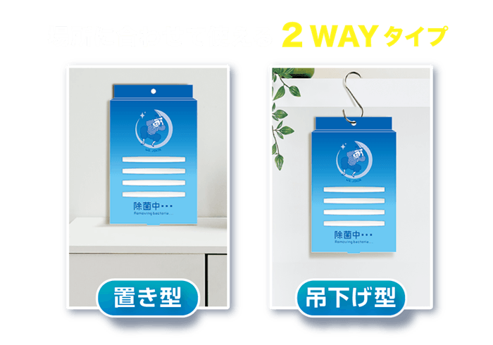 成分の反応により、二酸化塩素を発生させ、空間内の除菌消臭に役立ちます。