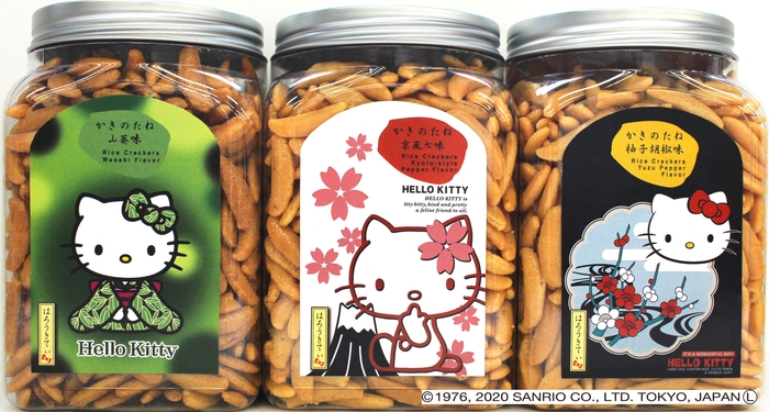 珍味製造卸の大橋珍味堂株式会社(所在地:滋賀県東近江市種町1717、代表取締役:大橋 史和)は、株式会社サンリオの日本でも海外でも人気のキャラクターであるハローキティをデザインしたポット柿の種シリーズを3種類(ゆずこしょう味、わさび味、京風七味味)2020年6月24日(水)に発売いたします。