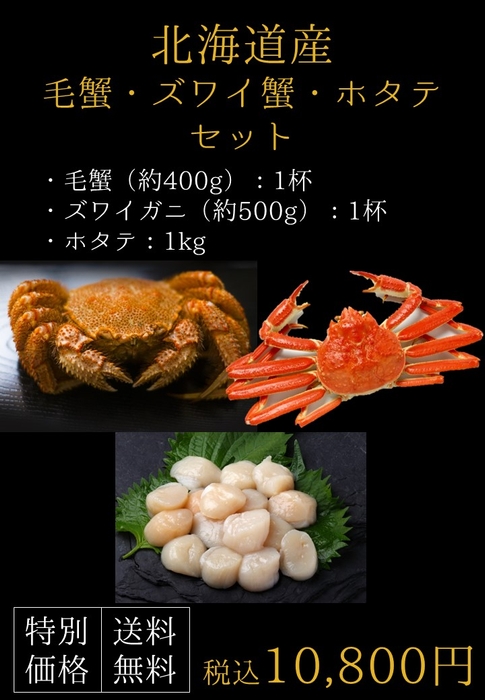 北海道産毛ガニ・ズワイガニ・ホタテセット