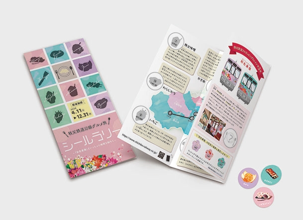 秩父鉄道沿線グルメをかわいらしいシールにして、集めながら地域のことを楽しく知ることができるようにしました。シールを集めると「彩色兼備」デザインのオリジナルグッズがもらえます。